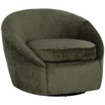 Designed with an irresistibly curvy shape, this contemporary swivel lounge chair is the perfect accent piece to make a statement in any room. Upholstered in husky grey fabric with a black powder coated stainless steel base.