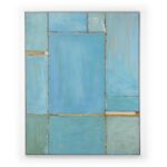 An ode to Piet Mondrian, the pioneer of 20th century abstract art and neoplasticism, our Blue Mood painting focuses on the two primary directions – horizontal and vertical – in order to create “universal beauty”. Various hues of blue are accented with touches of gold to impart a serene feeling.