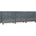 - Finish: Heavily distressed antique blue finish with dry brushing and rub through with matching blue painted hardware.