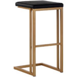 A modern industrial stool featuring a backless seat in onyx faux leather and a cantilever frame with footrest in grey powder-coated steel. Suitable for various dining, kitchen and bar spaces of all sizes.