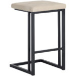 A modern industrial stool featuring a backless seat in onyx faux leather and a cantilever frame with footrest in grey powder-coated steel. Suitable for various dining, kitchen and bar spaces of all sizes.