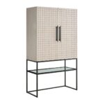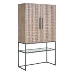 The Boulder Bar Cabinet combines architectural detail with modern functionality. Featuring the collection’s signature latticework design and a warm Boulder medium-brown finish, its upper cabinet offers stylish storage, while the open metal base with a glass shelf provides a contemporary display area. This bar cabinet is a sophisticated addition to any entertaining space, blending form and function with a touch of refined elegance.