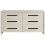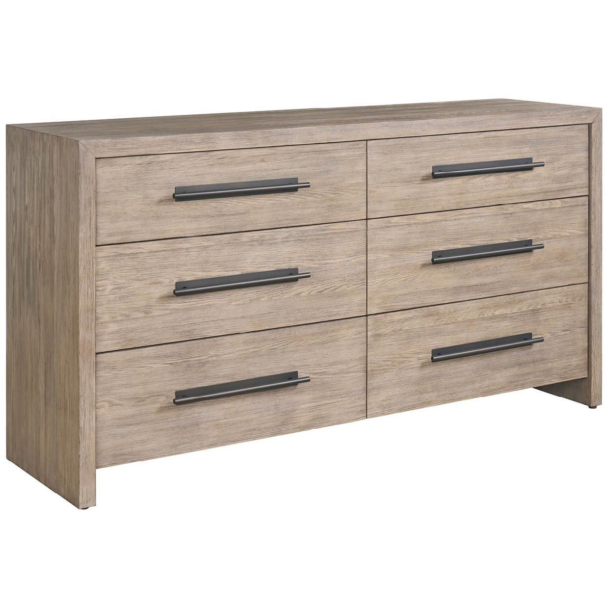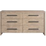 Crafted in a warm Boulder medium-brown finish, the Six Drawer Dresser blends natural texture with clean, modern lines. Its framed drawer fronts and sleek hardware create a sophisticated storage solution, perfect for adding both functionality and a touch of architectural detail to your bedroom.