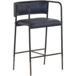 Simplicity is key with this effortlessly elegant counter stool that features a curved backrest. Stocked in bravo cognac and admiral faux leathers, and completed with a black metal frame and legs with antique brass foot caps. Made in India. With refined craftsmanship, this design was brought to life by skilled local artisans. By nature, these materials develop unique imperfections such as fissures, markings and colour variations for a truly one-of-a-kind piece. Handle With Care: This design has been crafted with faux leather. Faux leather is manufactured to reflect the natural characteristics of leather; as such, colour variations, markings, wrinkles, grooves, and light scratches are appreciated characteristics. No two pieces will be alike.
