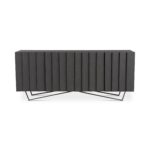 Invite darker hues and decorative introspection into your space with the Brolio collection. Solid, dark-hued mango wood cuts a dramatic profile, while sturdy iron legs bring sculptural elegance to satisfy those artsy cravings. The Brolio sideboard features 4 hidden doors, providing a subtle look for your dining space while still safely storing all your dinnertime items. An ideal storage solution for the dining room, pair this piece with others from the Brolio collection for a complete look.