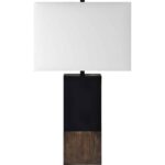 Contemporary minimalism takes the spotlight in this sleek table lamp design. A marriage of warm pinewood, sleek black iron, and off-white cotton, it brings a designer quality to the modern living room.