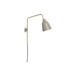 The sleek design of this modern wall sconce uses minimalist details for maximum design impact. An artful combination of matte and metallic finishes pairs the dome of a gray iron shade with a muted brass stem for stunning results. The angular arm of the accent light is ideal for a workspace or reading nook, directing outward illumination away from the wall.