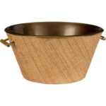 Impress guests at your next cocktail party with our Brunching Beverage Chiller. This durable design is made of steel covered in natural woven cane that provides a coastal vibe. A removable steel liner with an antique brass finish allows for easy clean up.