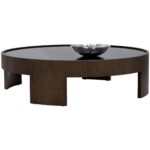 Bring sophistication to any living space with this large coffee table that is infused with a touch of contemporary style. Features a distressed brown oak wood veneer frame with a smoked tempered glass top. As wood is an organic, porous material, these pieces will contain natural variation of texture and may also exhibit fine indentations and cracks. Wood pieces will also display a disparity of colour and grain, and visible knots and burls that add to the character of each piece.