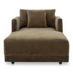 The Bryn chaise brings together style and sustainability. A larger profile is finished in a boucle, velvet and wool blend as warm tones and textured materials reflect traditional, heirloom-like qualities. This piece is upholstered with GRS© (Global Recycled Standard) certified, and also features a frame crafted from FSC®-certified wood, which ensures that the wood is sourced from responsibly managed forests, and the product is manufactured in good working conditions, with minimal environmental and chemical impacts.