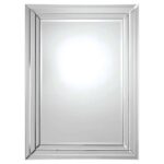 This contemporary design features a dimensional beveled-mirror “step” frame and a beveled center mirror. With its sleek look and clean lines this mirror is a great look that surely earns the “wow” factor.