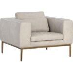 A masculine armchair with a modern design. Features an oversized seat and armrests with rustic bronze feet. Stocked in bali bone leather. Can be paired with coordinating sofa. Handle with Care: This design has been crafted with leather. Leather is a natural material; as such markings, wrinkles, grooves and light scratches are acceptable and appreciated characteristics. No two pieces are alike.