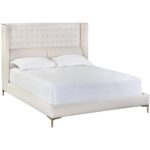 Drift to a blissful escape while resting in the Cairo bed. This design features deep tufting and a generously cushioned headrest for added comfort. Hand-hammered nail heads and antique brass legs complete the look. Stocked in antonio charcoal performance fabric. Performance fabric is moisture repellent, durable and easy to clean. No box spring is required and folding slats are included.
