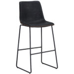 A comfortable and compact barstool. Features a simple, mid-century silhouette and finished with a brushed black steel frame. Stocked in antique grey faux leather. Suitable for various dining, kitchen and bar spaces of all sizes.