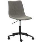 A comfortable and compact office chair. Designed with a simple, mid-century silhouette. Features an adjustable seat and castors for mobility. Stocked in antique black faux leather. Handle With Care: This design has been crafted with faux leather. Faux leather is manufactured to reflect the natural characteristics of leather; as such, colour variations, markings wrinkles, grooves, and light scratches are appreciated characteristics. No two pieces will be alike. Visit our Product Care page for more information on how to ensure the lasting beauty of this piece.