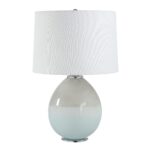 Your search for the perfect table lamp to feature in your transitional design project ends here. This one expertly combines pale blue glass, chrome details and a crisp white linen shade to create a lamp with classic good looks. Anywhere you place it, beautiful light and style are guaranteed.