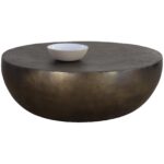 Add global flair to any living space with this unique coffee table. Handcrafted in India using antique bronze aluminum curved into a drum like shape. The etched tabletop adds extra character to complete the piece.