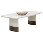 Beautifully textured with ample seating room, the Calida Dining Table will bring any dining space to life. Fully upholstered in pebbled cream faux leather that is scratch resistant and easy to clean. Brushed gold stainless steel on the base completes the look. Handle With Care: This design has been crafted with faux leather. Faux leather is manufactured to reflect the natural characteristics of leather; as such, colour variations, markings, wrinkles, grooves, and light scratches are appreciated characteristics. No two pieces will be alike.