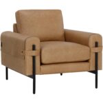 With its classic silhouette, the Camus Armchair will add comfort to any room. Generously upholstered in soft ludlow sesame leather that is as stylish as it is luxurious. Strap detailing on the front and back of the rounded armrests provide a playful accent to the piece. Completed with black iron legs. Handle with Care: This design has been crafted with top grain leather. Leather is a natural material; as such, colour variations, markings, wrinkles, grooves and light scratches are acceptable and appreciated characteristics. No two pieces are alike. Visit our Product Care page for more information on how to ensure the lasting beauty of this piece.