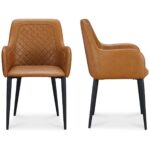 A refined and contemporary dining chair the Cantata is made with sturdy steel legs and a durable and easy-care polyurethane upholstery. The diamond tufted back and arm rests make it a great chair for enjoying long dinners with friends and family, and maybe the occasional card game.