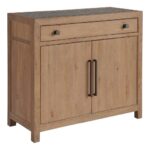 The Canyon Bar Cabinet is a sophisticated and functional addition to any home. Its versatile design, featuring adjustable shelving, wine storage, and a unique leather-textured stone top, makes it the perfect piece for entertaining guests. The medium hue finish and metal hardware create a modern and stylish look that complements any interior decor.