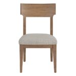 The Canyon Wood Back Side Chair is a stylish blend of modern and rustic design. Its sleek wooden frame and comfortable fabric seat offer a perfect balance of form and function. This chair is a versatile piece that can complement a variety of interior styles.
