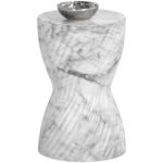 With a mesmerizing shape, this end table is well defined by its stunning swirl indentation on the base. Made with a grey faux marble finish on concrete. Suitable for indoor and outdoor covered spaces. Coordinating coffee table in white concrete also available.