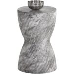 With a mesmerizing shape, this end table is well defined by its stunning swirl indentation on the base. Made with a grey faux marble finish on concrete. Suitable for indoor and outdoor covered spaces. Coordinating coffee table in white concrete also available.