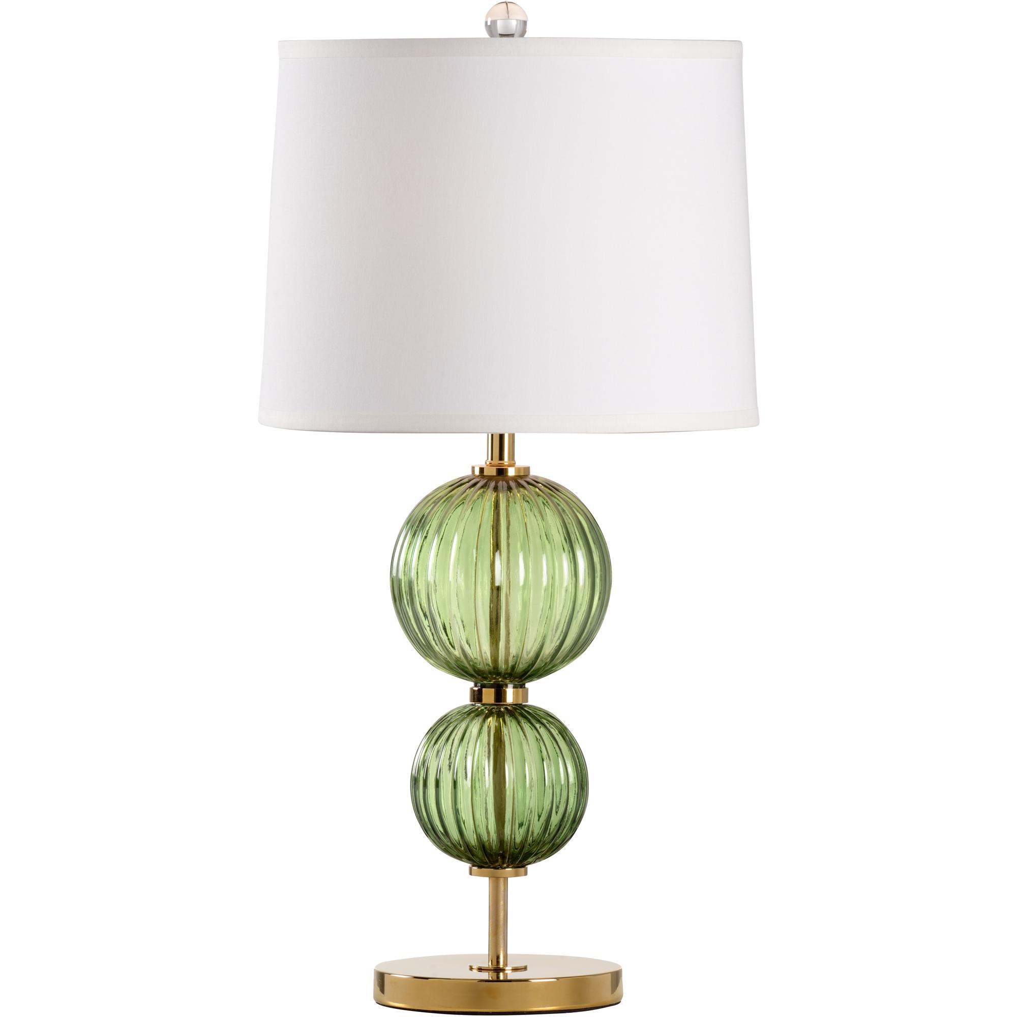 Green fluted crystal orbs with polished brass mounting.