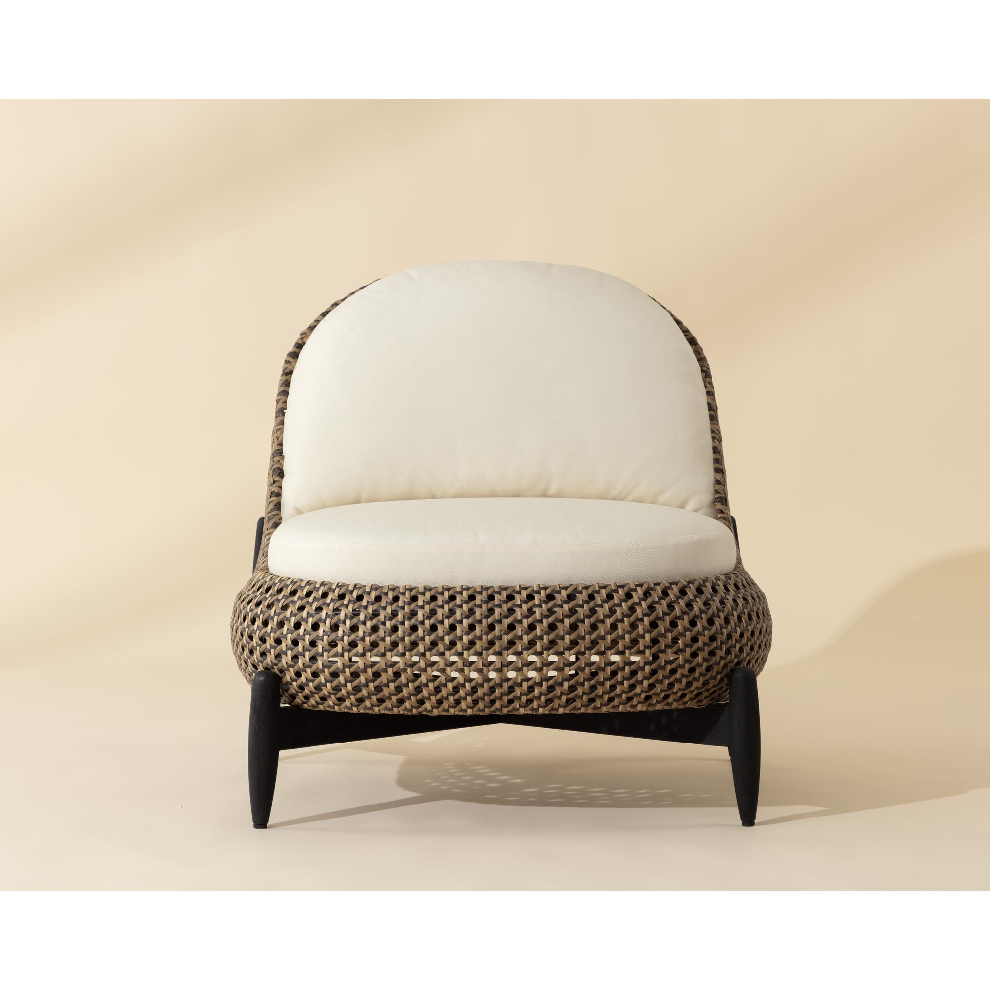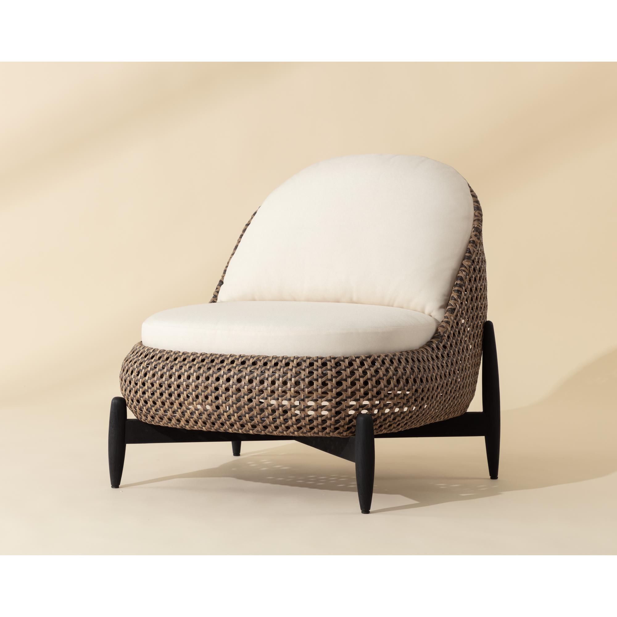 A curved, relaxed frame lends the Carilo Lounge Chair its playful modern form. Showcasing an expert mix of weather-resistant materials, this design boasts teak legs paired with a powder-coated aluminum frame featuring a sophisticated handwoven pattern made from synthetic wicker. Durable foam-filled cushions covered in performance fabric offer exceptional comfort and are removeable for effortless cleaning, making this outdoor lounge chair a perfect patio companion.
