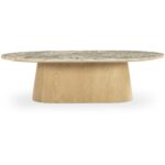 - Material Matchmaking: A marble capsule top combines with an oak veneer pedestal base, creating a harmonious blend of natural elements.