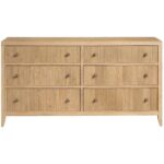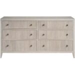 The Carmen Dresser, a timeless piece, offers ample storage with six spacious drawers. The top two drawers, lined with gray felt, provide a secure home for delicate jewelry. Its versatile Skylark Finish seamlessly integrates into various interior styles, from classic to modern.