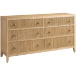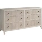 The Carmen Dresser, a timeless piece, offers ample storage with six spacious drawers. The top two drawers, lined with gray felt, provide a secure home for delicate jewelry. Its versatile Skylark Finish seamlessly integrates into various interior styles, from classic to modern.