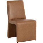 Create an alluring dining space with this modern dining chair that features an intriguing silhouette. Stocked in marseille camel leather with a fully upholstered wooden base. Handle with Care: This design has been crafted with 100% leather. Leather is a natural material; as such, colour variations, markings, wrinkles, grooves and light scratches are acceptable and appreciated characteristics. No two pieces are alike. Visit our Product Care page for more information on how to ensure the lasting beauty of this piece.