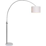 The retro arc of this decorative floor lamp looks effortlessly glamorous from the ground up. The elegant arch of the metal stem is grounded by a round iron base, which keeps the curve of the lamp and off-white cotton drum lampshade in perfect poise. The mid-century style silhouette and brushed satin nickel finish makes it easy to mix and match this decorative light fixture with other modern furnishings.