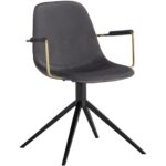 This swivel dining chair is where urban cool meets contemporary elegance. Stocked in dillon cream faux leather. Brushed gold finished arms and black iron legs complete this look. Also available in abbington black fabric with contrasting bravo black faux leather and slate tint fabric with contrasting nightfall black faux leather. Handle With Care: This design has been crafted with faux leather. Faux leather is manufactured to reflect the natural characteristics of leather; as such, colour variations, markings wrinkles, grooves, and light scratches are appreciated characteristics. No two pieces will be alike.