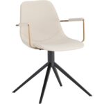 This swivel dining chair is where urban cool meets contemporary elegance. Designed with a slate tint fabric seat and a channel tufted exterior in nightfall black faux leather. Brushed gold finished arms and black iron legs complete this look. Handle With Care: This design has been crafted with faux leather. Faux leather is manufactured to reflect the natural characteristics of leather; as such, colour variations, markings wrinkles, grooves, and light scratches are appreciated characteristics. No two pieces will be alike. Visit our Product Care page for more information on how to ensure the lasting beauty of this piece.