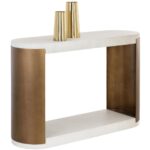 Combining old world influence with feminine flair, this stunning console table exudes opulence. Features a ridged white concrete top and base with a brass steel frame.