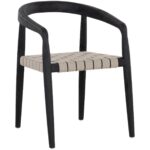Contrasting textures with impressive details elevate this stylish dining armchair from the Outdoor by SUNPAN collection. The seat is made with Italian all-weather strap which is constructed from 100% recyclable polypropylene fiber for long lasting durability and comfort. Completed with a solid, charcoal-coloured teak wood frame. Suitable for indoor and covered outdoor spaces.