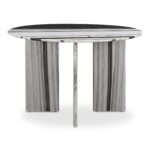 The Celia round dining table effortlessly combines contemporary flair with a timeless silhouette. The table’s allure is further enhanced by expressive green onyx panda marble, adding a touch of artistry and opulence. The smooth and organic textures on the marble beautifully contrast with the table’s geometric base, creating an intriguing visual harmony and exuding an undeniable sense of elegance and versatility.