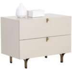 Add beauty to your bedroom oasis with this large, stylish nightstand. Designed with two soft closing drawers crafted from rubberwood, featuring a subtle wood grain texture and a painted cream finish. Uniquely sculpted antique brass feet and drawer pulls complete the look. As wood is an organic, porous material, these pieces will contain natural variation of texture and may also exhibit fine indentations and cracks. Wood pieces will also display a disparity of colour and grain, and visible knots and burls that add to the character of each piece.