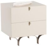 Add beauty to your bedroom oasis with this stylish nightstand. Designed with two soft closing drawers crafted from rubberwood with acacia veneer. Featuring a subtle wood grain texture and a painted teal finish. Uniquely sculpted antique brass feet and drawer pulls complete the look. Pair with coordinating dresser. Large version also available. Nightstand, console table, bookcase and desk also stocked in cream.