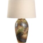The Chaiaki Table Lamp, part of the Shiga collection, is hand turned with special local sandy clay from the bed of Lake Biwa creating this unique, durable artful lamp completed with cloth wiring and a refined rolled-edge linen shade. Made in Japan.