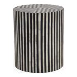 The Chameau side table features an eye-drawing striped design, its art deco flair beautifully complimented by its simple cylindrical shape. A versatile piece that serves as an end table, plant stand or occasional seat.