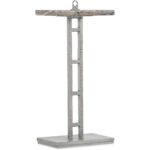 - Finish: Unique hand-hammered forged pewter finish with a honed silver travertine stone top.