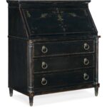 - Finish: Black Cherry: this finish emulates the vibrancy of the warm cherry finish shining from beneath the Black Cherry patina and includes subtle distressing which exemplifies the heirloom nature of the collection. Handpainted accents on the drop-front. Knobs and decorative ring pulls feature an antique bronze color.