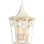 Created from a love of lattice and lanterns, the Church Court Lantern derives its form from lanterns that graced churches and lamp posts throughout Europe. Updated for scale and the softness of an interior shade, the Church Court Lantern is perfect for oversized entry foyers, tall ceilings, hallways, or anywhere you are looking for the unexpected and sophisticated. There are six lights. It comes with six feet of chain.