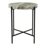 Polished sand-brown marble sits atop a sturdy iron frame, making this accent table both durable and beautiful.