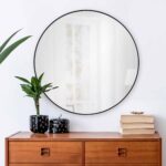 This mirror serves as an inviting blank canvas for reflection. This circular mirror makes a grand impression in the living space or powder room while still providing function. The black powder-coated metal frame feels simple yet sleek.