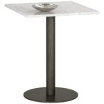 An Art Deco inspired 24″ square bistro table featuring a white marble top with a pewter finished steel base. Perfect for restaurants and smaller dining spaces. Also available with a 30″ square top. As marble is a natural material, unique veining, pitting, fissures, micro-cracks and colour variations are all characteristics that add to the uniqueness and beauty of each piece.
